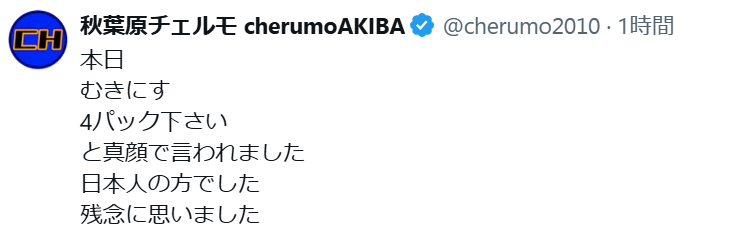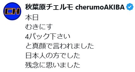 残念に思いました— 秋葉原チェルモ cherumoAKIBA (@cherumo2010) February 15, 2026
